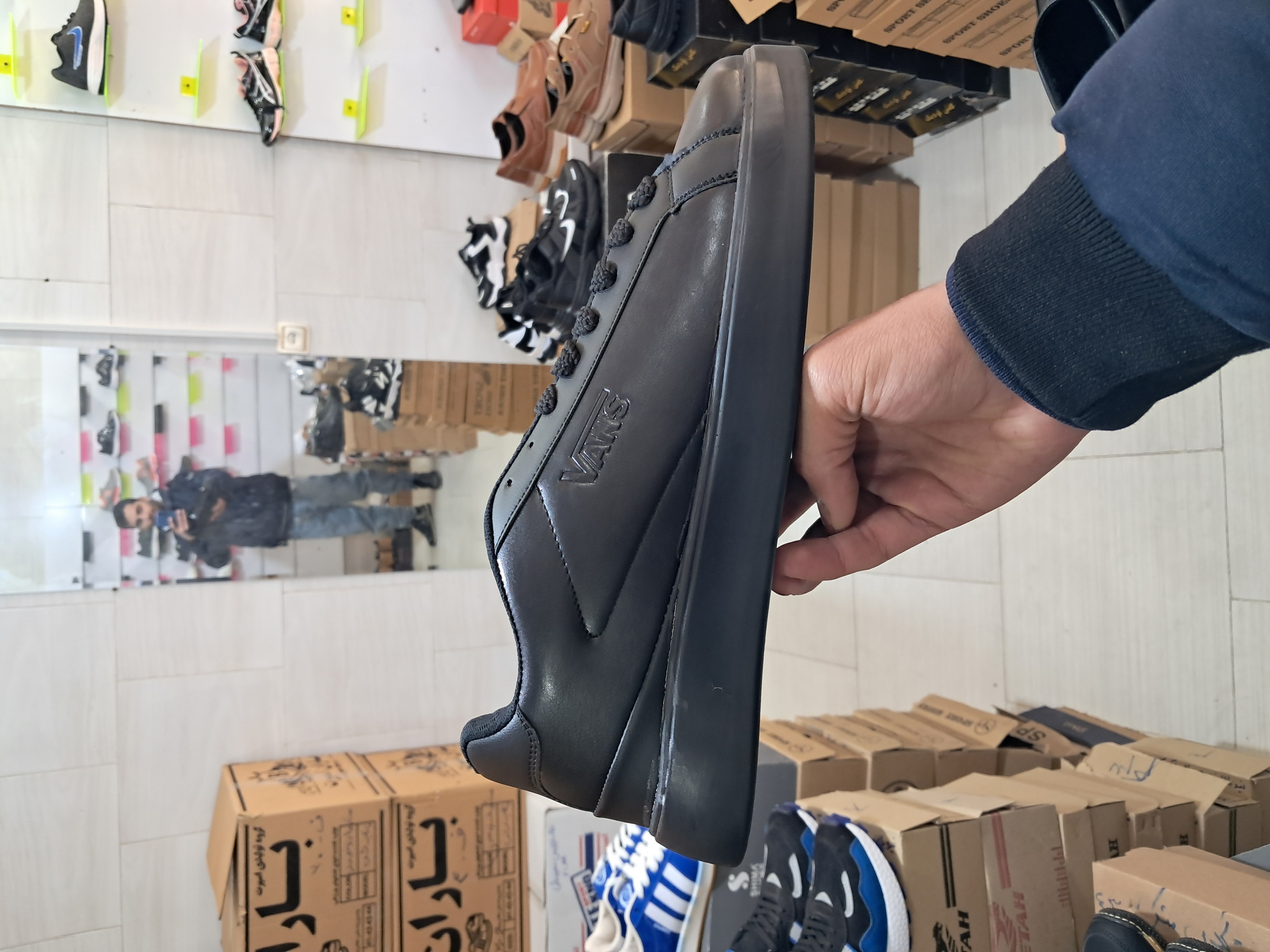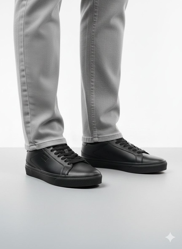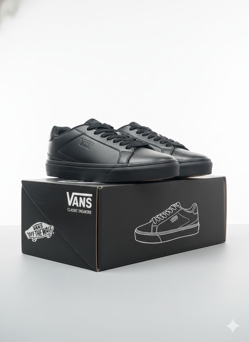 کتونی مردانه بزرگ پا مدل ونس VANS رنگ مشکی رویه چرم مصنوعی