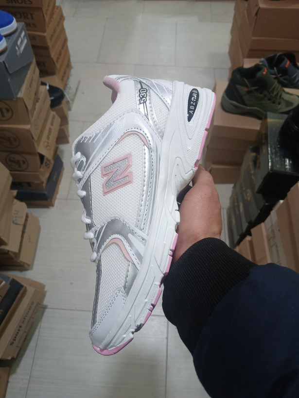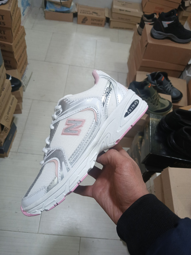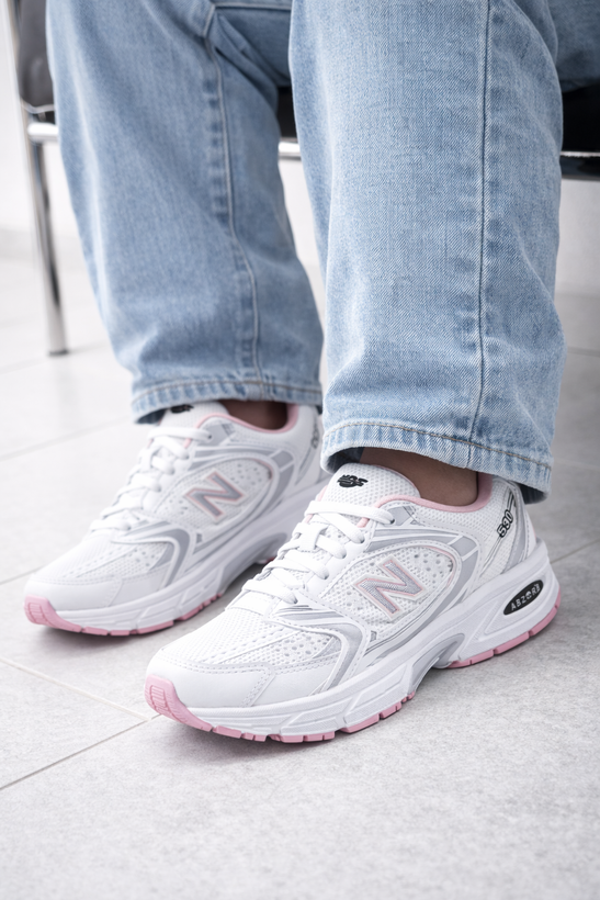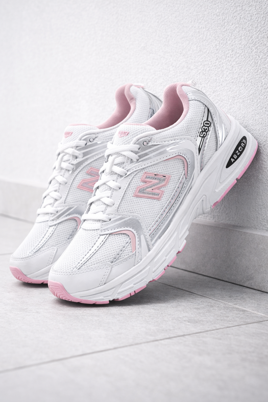 کتونی نیوبالانس زنانه 530 سفید صورتی ، سبک + بند هدیه