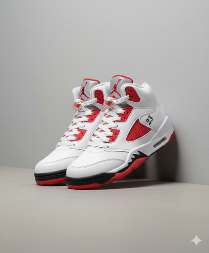 کفش کتونی جردن 23 ساقدار (jordan23) سفید قرمز با بند هدیه